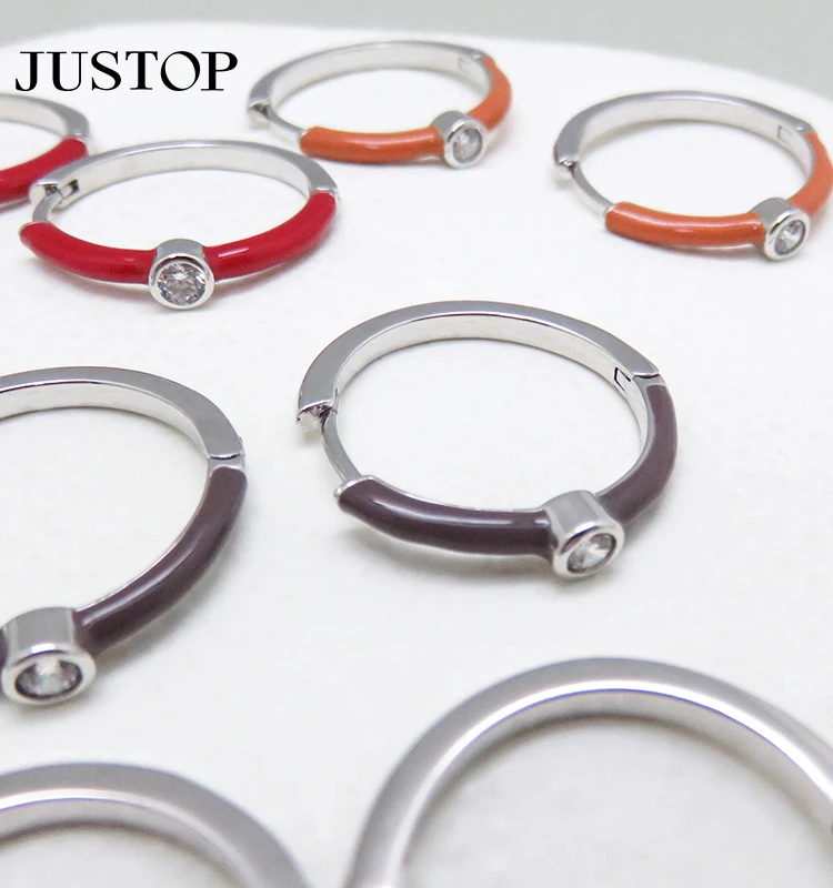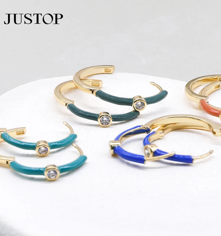 Simple Summer Colorful Series 18K Gold Plated Copper Silver Gold Enamel Hoop Earrings for Women Geometric Trendy Design Mainly